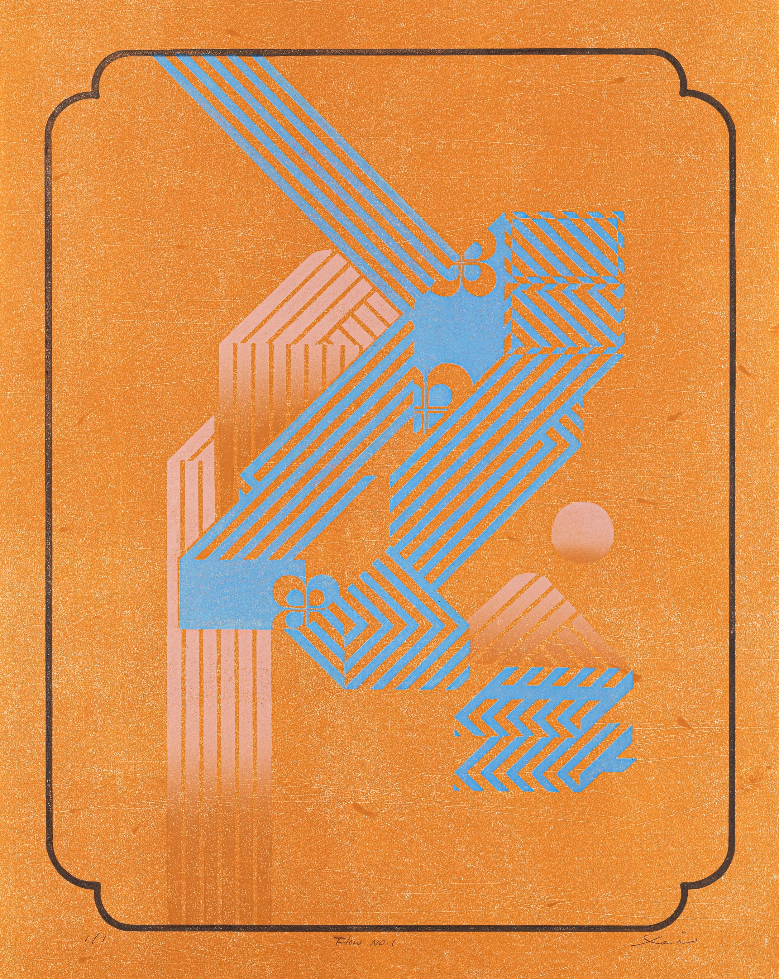 Flow On, no.1 / intaglio, relief, mixed-media, oil ink, paper, hand-printed,(ed. 1/1), 73X58cm, 2022.