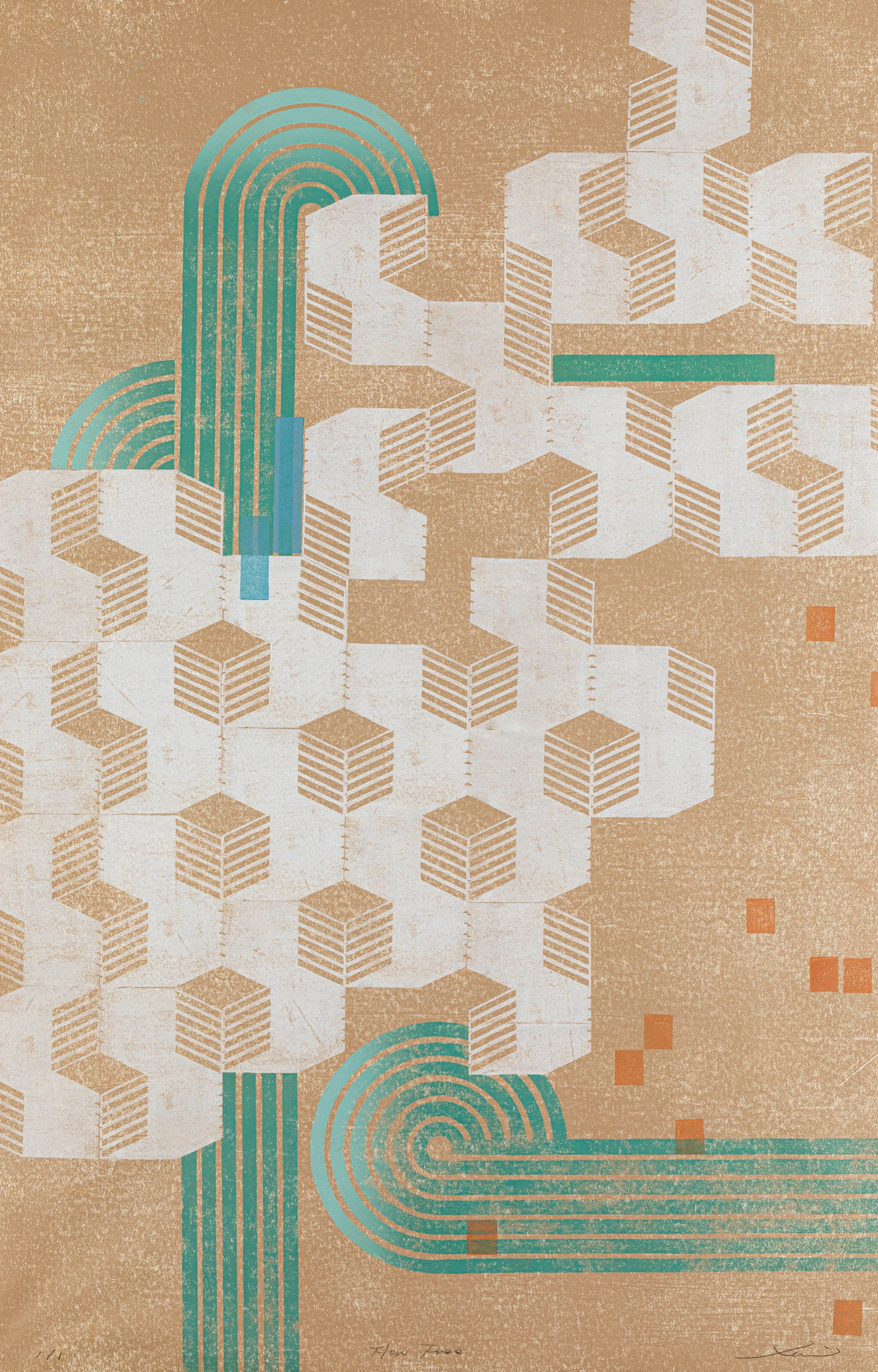 Flow On, no.2 / intaglio, relief, mixed-media, oil ink, paper, hand-printed,(ed. 1/1), 73X58cm, 2022.