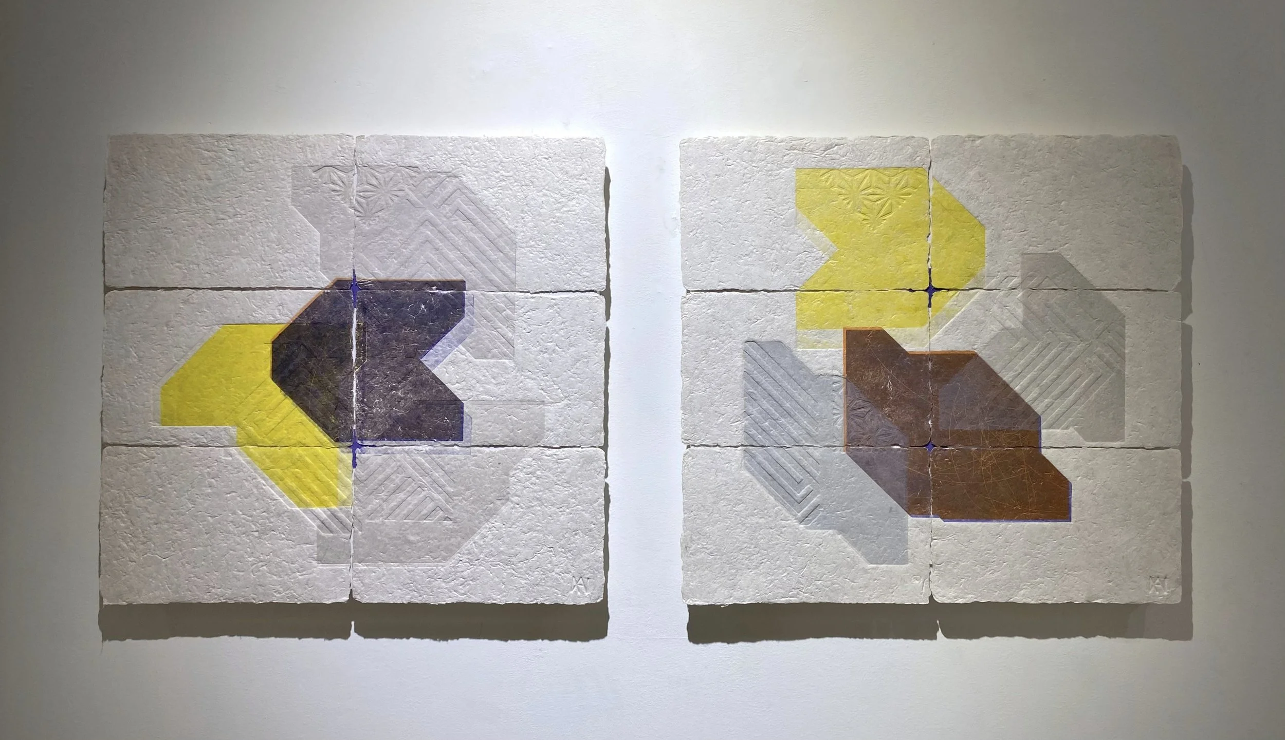 L : <Flow On, no.3> 50x52cm, intaglio, relief, oil ink, self-handmade Korean mulberry paper,(ed. 1/1), 2023.