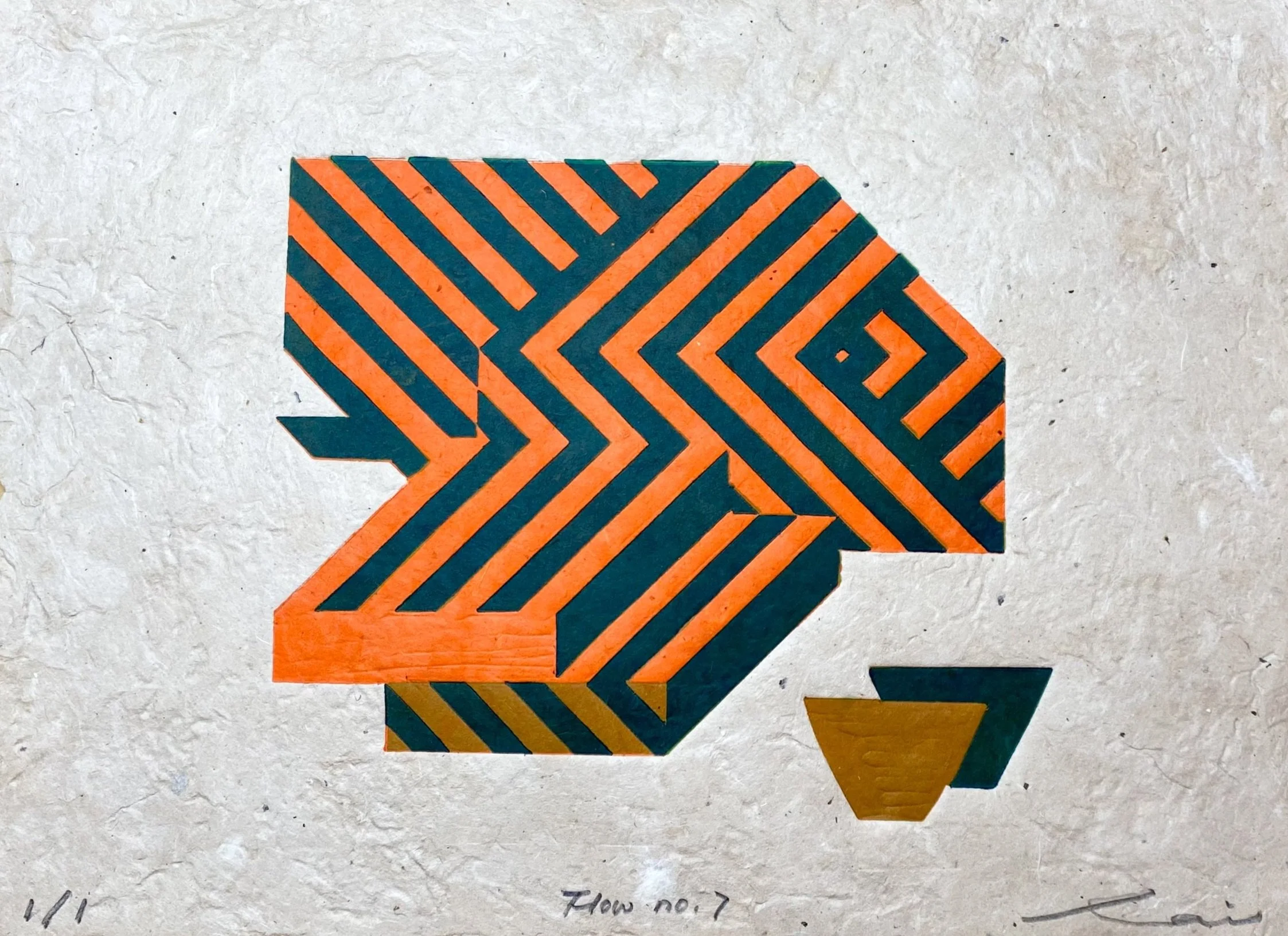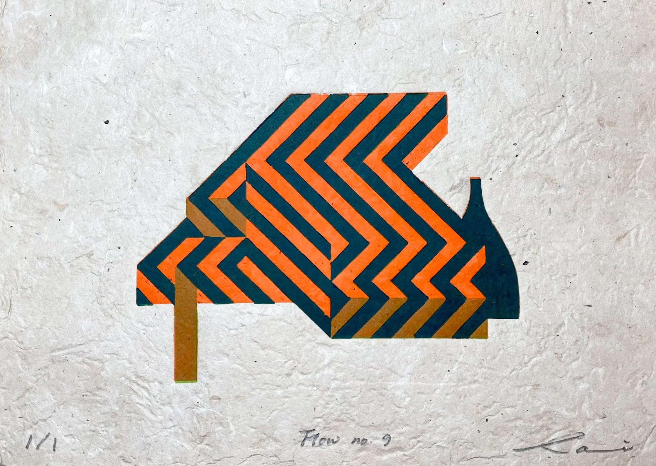 Flow no.6 & 4 / relief, oil ink, self-handmade Korean mulberry paper (Hanji), (ed. 1/1). 27x37cm, 2022.
