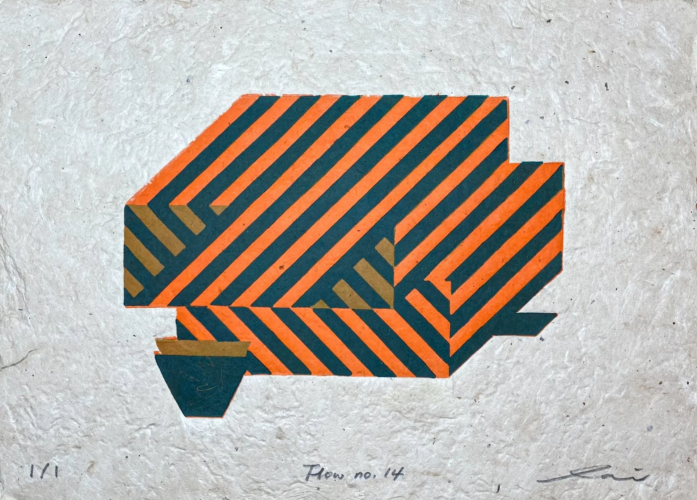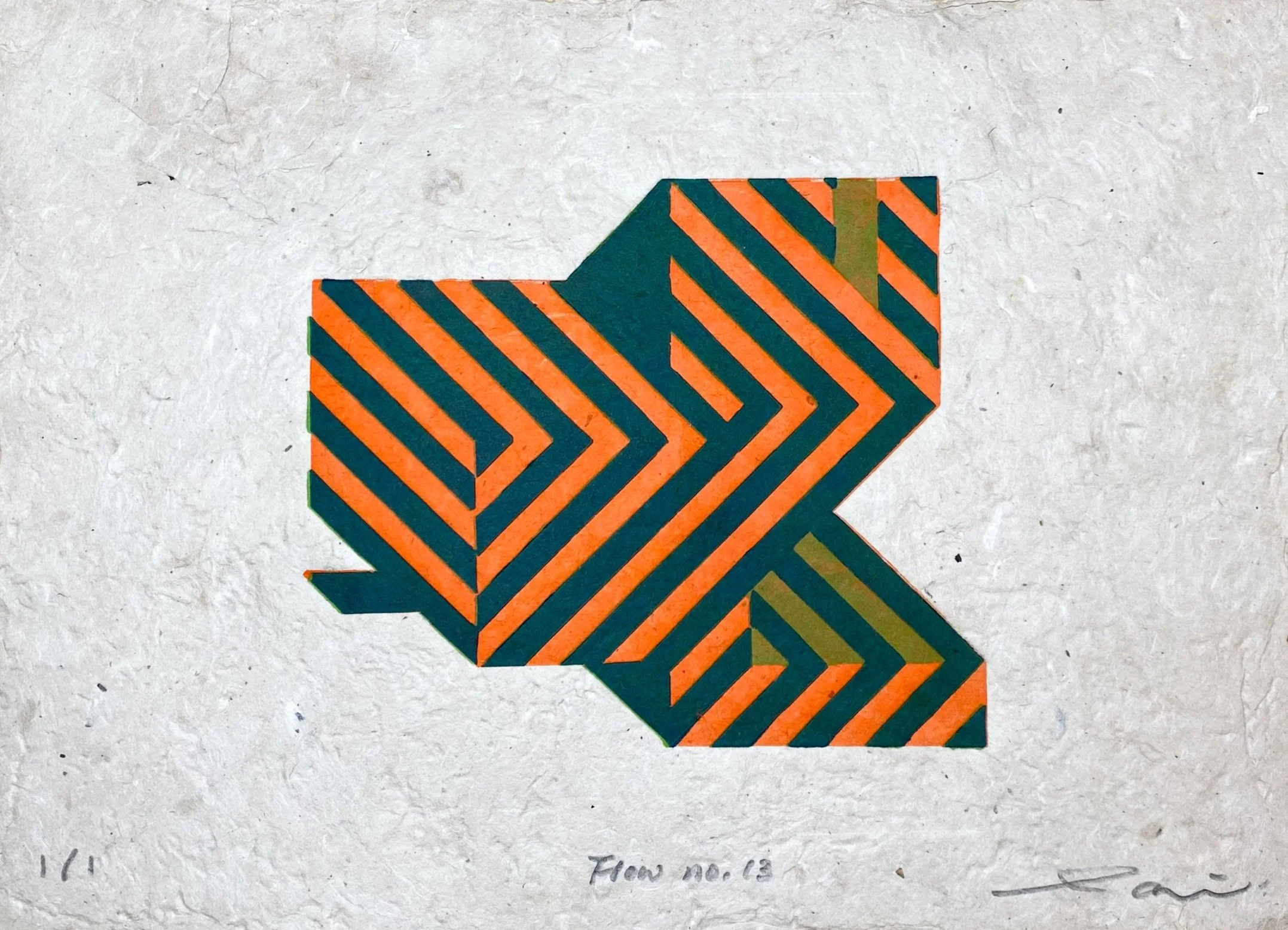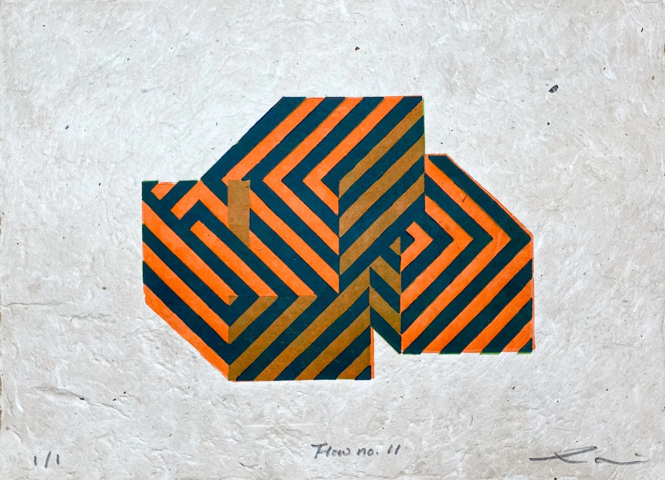 Flow no.7 & 12,14 / relief, oil ink, self-handmade Korean mulberry paper(Hanji),(ed. 1/1). 27x37cm, 2022.