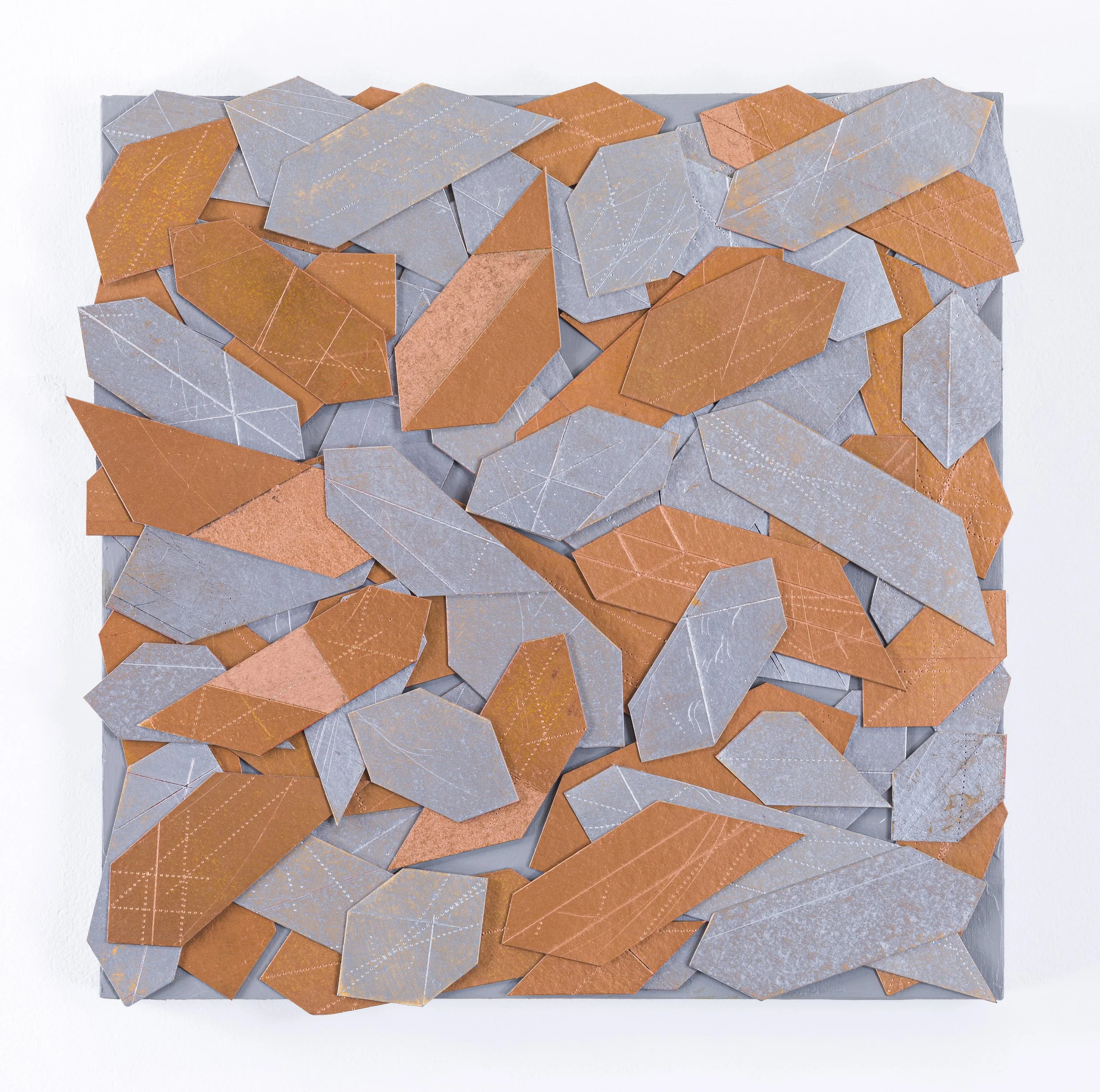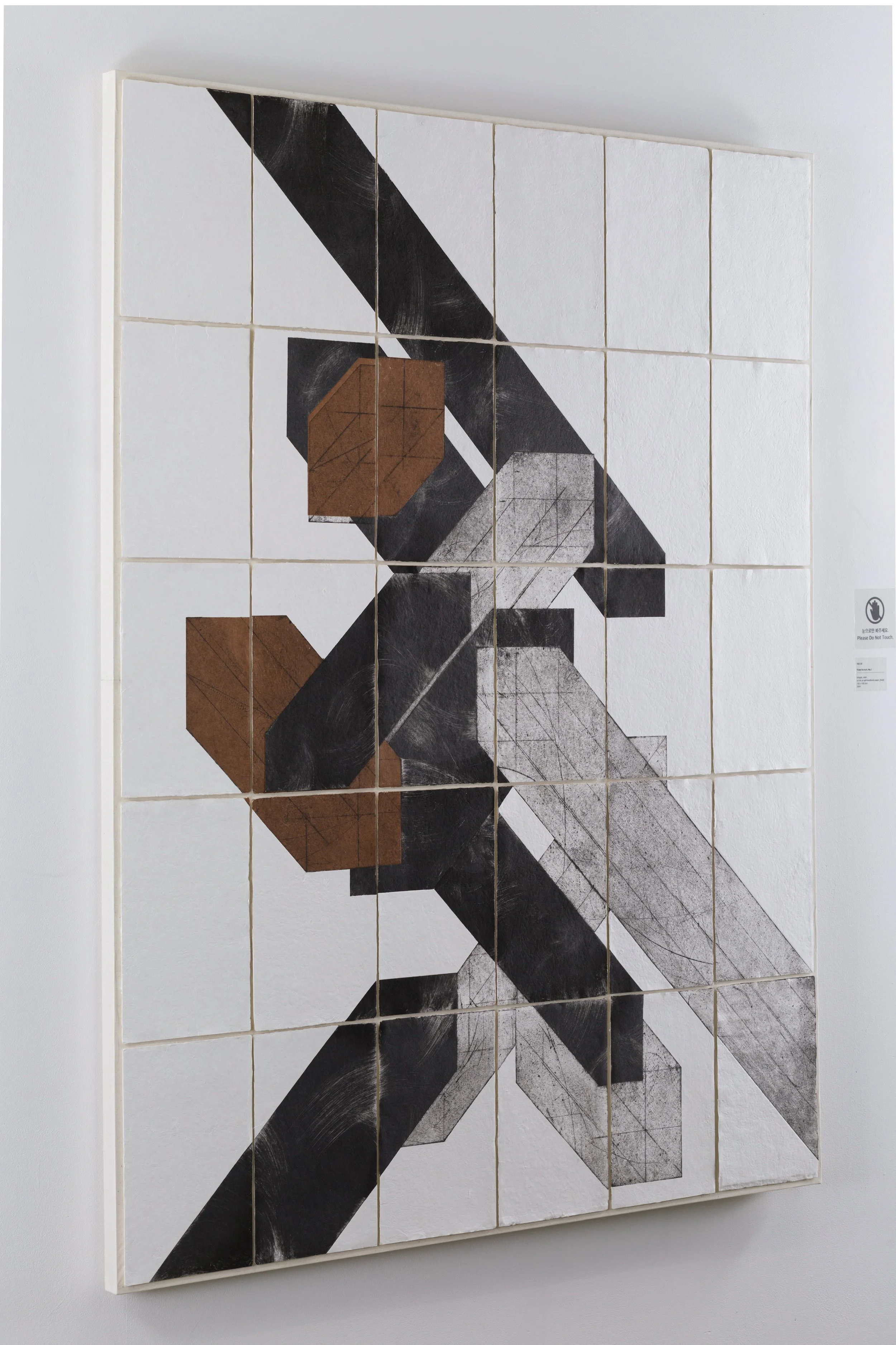 My work is expressed by point and line to plane. A point is the source of emotion, a line is the flow of emotion, and a plane is the collection of emotion. I connect the traces and complexity of emotion with the work. I apply printmaking techniques to different materials and geometrically arrange the puzzle pieces. It is also my own way of looking at emotion objectively. I am experimenting with the shapes of emotion and this exhibition is the first step of that experiment. I would like to suggest the coordinates and journey of discovering the geometry of emotion through this exhibition.