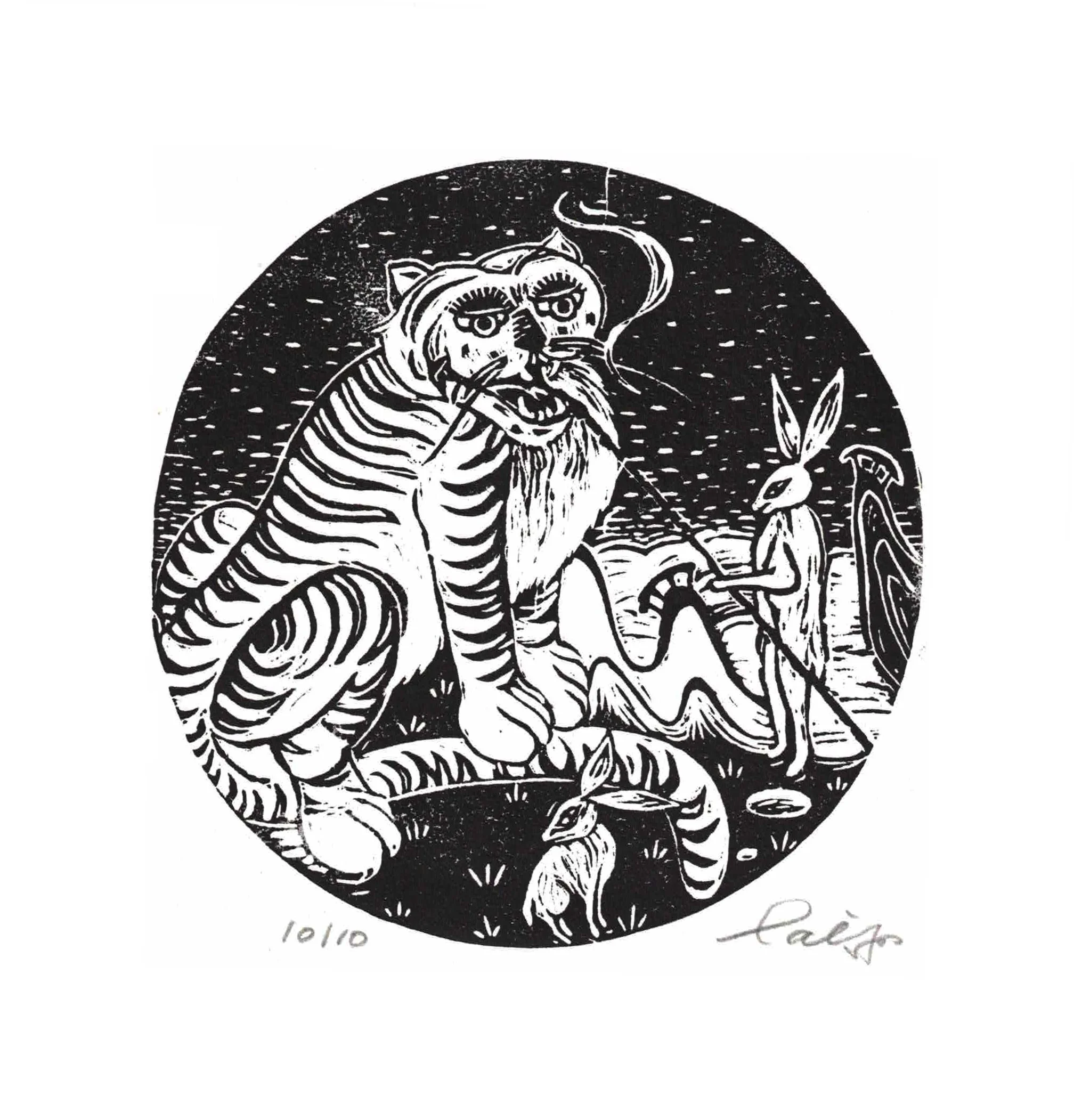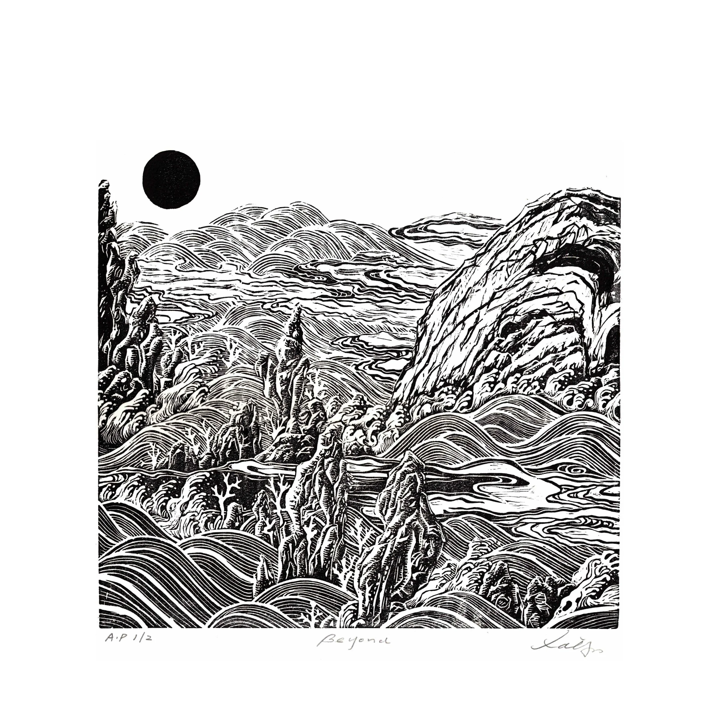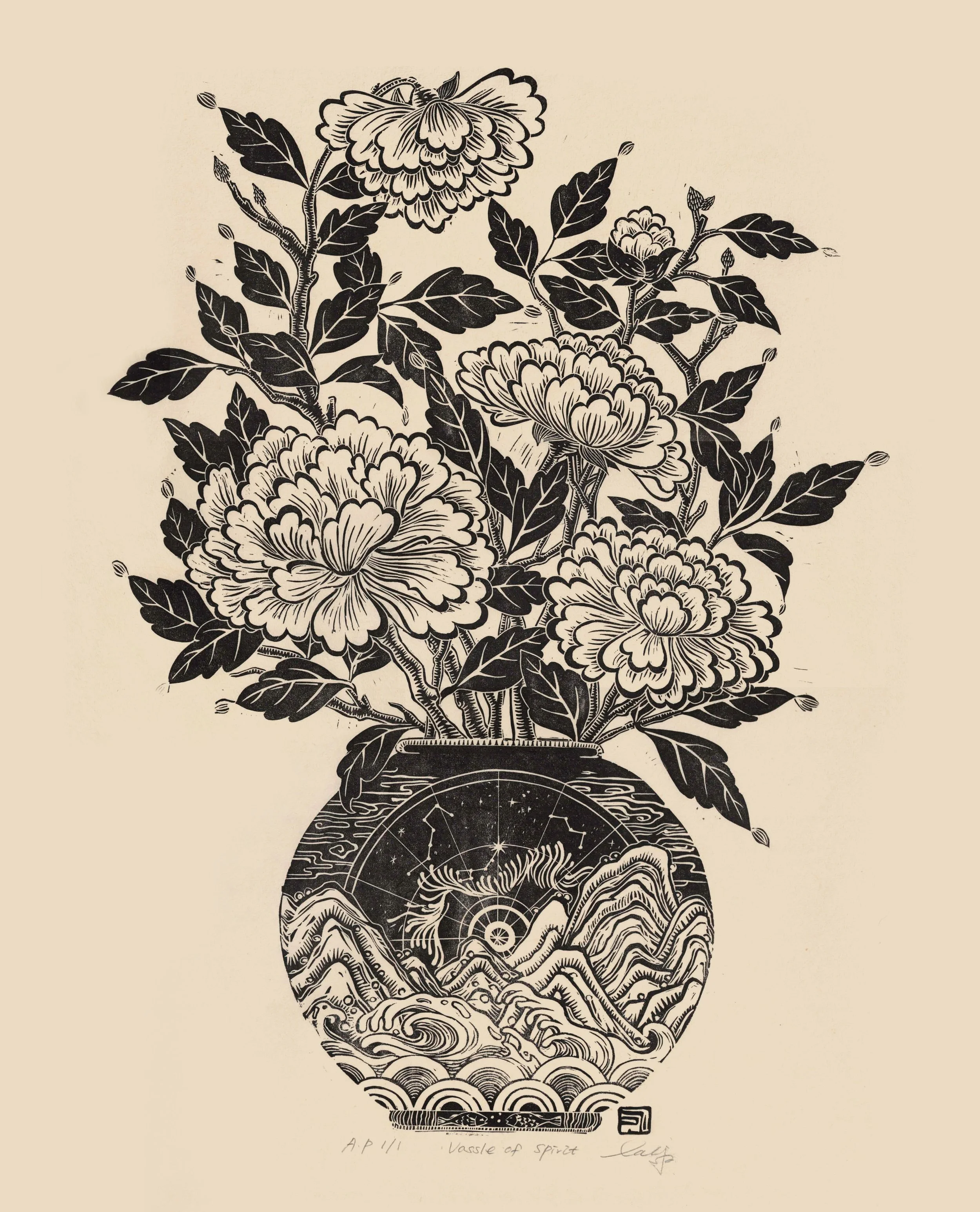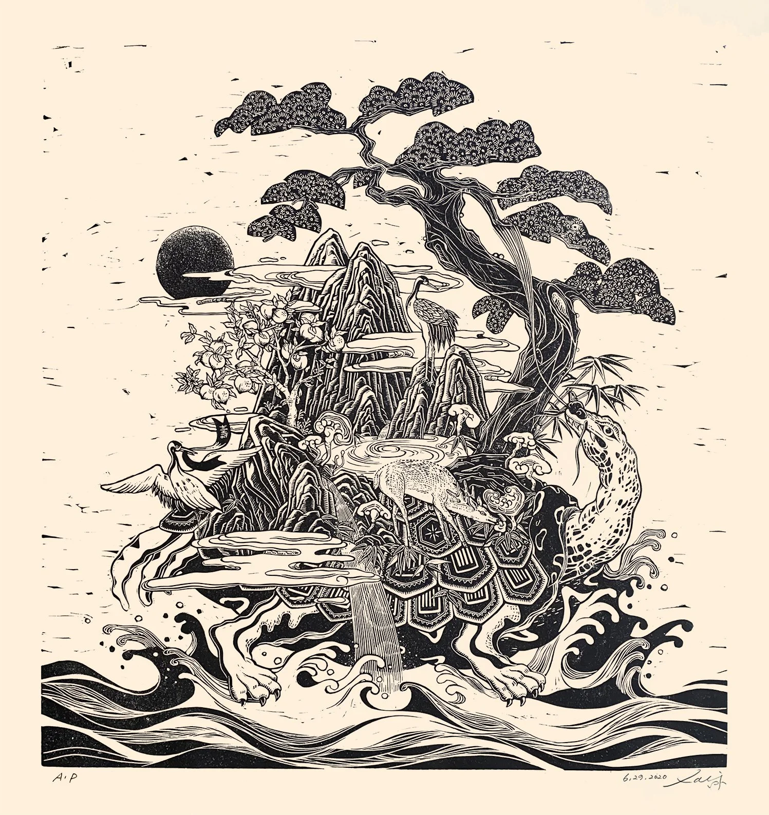 40.6x30.5cm, Linoleum, hand-printed, oil link, Kitakata paper.